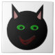 This awesome tile features a black cat with pointed ears, bright green eyes and a sly red grin. This creepy kitty is perfect for Halloween or for cat lovers.