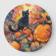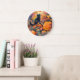 Halloween Black Cat With Pumpkins Scary Wall Clock