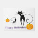 Halloween door mat shown with a cute festive pumpkins and black cats print. Customise this mat or buy as is.
