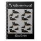 A pattern of lying down black cats in various sizes. The words on the top (Halloween Journal) and the bottom (Elisa Gotic) can easily be replaced by whatever words you would like to see there.