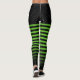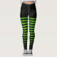 Black green and White spider web Halloween Leggings. Spooky Clothing Halloween cobweb design on custom black and horizontal lines.