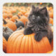Halloween Black Kitten On a Pumpkin Square Sticker