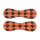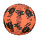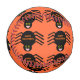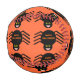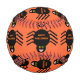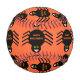 This awesome baseball features a spooky black spider with eight hairy legs, yellow eyes with big black pupils and its mouth open showing its fangs. There is orange text that reads “Happy Halloween” and a matching orange background.