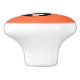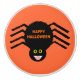This awesome ceramic knob features a spooky black spider with eight hairy legs, yellow eyes with big black pupils and its mouth open showing its fangs. There is orange text that reads “Happy Halloween” and a matching orange background.