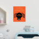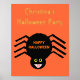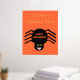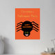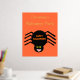 This awesome foil print features a spooky black spider with eight hairy legs, yellow eyes with big black pupils and its mouth open showing its fangs. There is orange text that reads “Happy Halloween” and a matching orange background. There is custom text so you can include a message. The text is in beautiful gold foil to make it really stand out