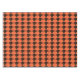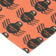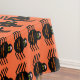 This awesome tablecloth features a spooky black spider with eight hairy legs, yellow eyes with big black pupils and its mouth open showing its fangs. There is orange text that reads “Happy Halloween” and a matching orange background.