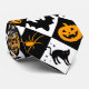 Halloween harlequin pattern with black, white, and orange colours on a customisable neck tie for men. There are bats, skulls, black cats, jack o lanterns, spiders, and crescent moons to add a spooky cute look to this classic Halloween diamond design. Fun to wear during October or use as part of a Halloween costume. Adjust the pattern size to you liking and add your favourite background colour instead of the white.