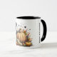 This seasonal Halloween holiday mug features an AI generated image of a sweet whimsical black kitten with a witch's hat. He's sitting among a variety of pumpkins and gourds and has some fall leaves and flowers and black butterflies around him. The image is created in a watercolor wash splash art style. The text says, "Happy Halloween", but you can change it and add your name if you prefer. Use Zazzle's many different font styles and colours to customise to your preference, or leave blank if you prefer. Zazzle also has many backgrounds that you my choose from, as well as icons that you can add to make the image your own. Have fun making it just the way you like! If you need any help customising this design, please don't hesitate to contact me, and I will be more than happy to assist you. You may contact me at KarenCoffelt@wolfmoonartanddesign.com or through Zazzle by clicking on the Chat button (please be aware that I am not available 24/7 to chat, but I will get back you ASAP). Thanks for looking!
