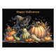 Halloween Black Witch's Kitten W/ Pumpkins Gourds Photo Print