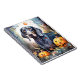 Get your furry friend ready for a howling good time with this adorable dog-inspired Halloween design! Featuring a spooky dog with pumpkins, this design is perfect for pet parents who want to include their four-legged family