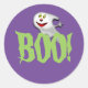 Round sticker is shown with a Halloween ghost boo print.