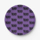 Halloween party paper plate shown in a Black and Purple colour with a BOO! print.