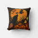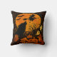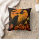Halloween Broom Flying Witch and Moon Throw Pillow