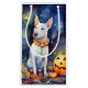 Get your furry friend ready for a howling good time with this adorable dog-inspired Halloween design! Featuring a spooky dog with pumpkins, this design is perfect for pet parents who want to include their four-legged family