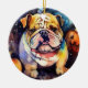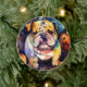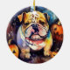 Halloween Bulldog With Pumpkins Scary Ceramic Ornament
