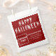Happy Halloween! One of the holidays of the year to advertise your business or to promote your brand name to customers. By the way, are you looking for paper bag with Halloween greeting? Please see this customisable paper bag. You might like it and this might be the paper bag that you are looking to pack your products to sell. You can put your business name on it to build brand name awareness and to greet your customers this Halloween. Design is white texts on red background. To customise this paper bag, upload your business logo, type your business or company name, address and phone number. Please check the appearance after uploading logo and typing texts. If the appearance is pleasing to you, you can place your order now. If you need to resize and move the logo and texts to fit on this paper bag, please change in the design tool. You can also make other changes according to your preference in the design tool such as changing the background colour, font colour and font style. Customise it and use it like a marketing material to advertise your business and to greet your customers Happy Halloween this holiday season.