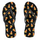 Trick or treat! Halloween flip flops feature an allover candy corn print in swirly watercolors, on a spooky black background. Coordinating items available in our shop!
