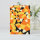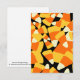Postcard printed with Halloween Candy Corn Seamless Pattern artwork design illustration by TheFabricSeal at Zazzle.com is filled with popular yummy delicious looking small pyramid shaped candies with bands of colors in white, yellow and pumpkin orange color palette tones. Candy Corn’s traditional colors represent the colors of fall harvest, corn on the cob, with the wide yellow band end resembling a corn kernel. This classic candy is known for being Halloween’s most contentious sweet.