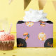 A fun Halloween personalised wrapping paper with a candy theme, in orange and black over a lilac background. Elegant, modern, simple and classy, a lovely choice for a girl celebrating her sixteenth birthday on or around Halloween, for a little pumpkin birthday or any birthday or Halloween party where you will be wrapping presents.