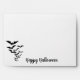 Card envelope is shown in a festive Halloween bats print design inside and out.