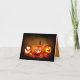 Cute photo of three pumpkins, carved for Halloween, is featured on this greeting card. Inside of card reads, " Halloween is finally here. Have fun, but be careful dear. Spooky things are very near. Trick or Treat with no fear. Happy Halloween"! A fun card to send family and friends for Halloween!