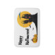 A customisable bath mat with the words "Happy Halloween!" and a castle silhouette against a beautiful full moon with clouds and bats and two Halloween pumpkins.