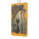 A cute black cat sits under a pumpkin lantern wearing a witch's hat. This cute Halloween card will cheer up anyone.