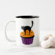 Gothic design of a cupcake with a black Halloween cat. Stylish gothic halloween design with a black and orange theme.