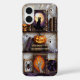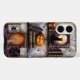 Cosy and spooky, this phone case features a Halloween bookshelf with a black cat, glowing pumpkin, and playful ghosts in a stained-glass–inspired design.