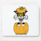 The mischievous little black alley cat found an empty pumpkin to hide in to spook the trick or treaters along their Halloween trail.