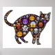 COLORFUL HALLOWEEN CAT WITH PUMPKINS, GHOSTS, DEVILS AND SKULL HEADS.