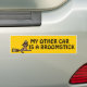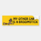 "My Other Car Is A Broomstick" humourous bumper sticker showing a cat with a witches hat riding a broom stick!