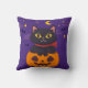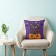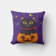 Halloween Cat Sitting on the Pumpkin Moon Star Bat Cushion