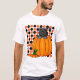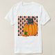 Colourful Halloween t-shirts, mugs, cards, stickers, trick or treat bags, magnets, and other Halloween clothing and gifts with a cute black cat in pumpkin and colourful orange and black dots design!