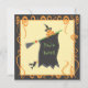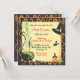 Cute Halloween Party Invitation with bubbling cauldron with a toad witch on a broom, raven and decorative swirls of steaming spells. Great for a Halloween birthday party invitation. Hand drawn illustration by McBooboo
