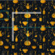 A witch themed Cauldron and potions patterned fabric. Design features potions and cauldrons in orange on a black background. A fun design for Halloween themed home decor, crafting and sewing or quilting projects.