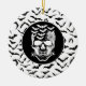 Halloween party ceramic ornament is shown with a spooky skull print on a bats white colour background.