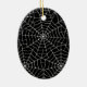 Halloween party ceramic ornament is shown with a spooky skull print on a spiderweb black colour background.