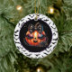 Halloween party ceramic ornament is shown with a glam pumpkin babe.