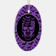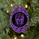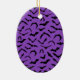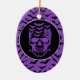 Halloween party ceramic ornament is shown with a spooky skull print on a bats purple colour background.