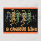 Skilled skeletal dancers fill the "stage". Some are shades of grey and others are orange tinted ot green tinted. "A Chorus Line" is below in an orange font which includes skulls. Background is black.