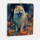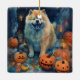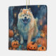 Halloween Chow Chow With Pumpkins Scary Ceramic Ornament