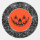 Halloween sticker is shown with a festive spider webs and pumpkin face print.