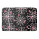 A bath mat with a cute seamless pattern with pink spiders and cobwebs.