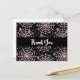 Thank you postcard with a cute seamless pattern with white cobwebs and pink spiders.