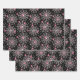 Wrapping paper sheets with a cute seamless pattern with white cobwebs and pink spiders.