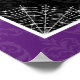 This fun and spooky party sign features Halloween themed cocktails with decorations such as a witch's hat, broomstick and cauldron, ghost, bat, pumpkins and eyeballs. In the background is a black and purple damask pattern with spider webs. The text combines decorative and serif fonts for a stylish and modern look. This is perfect for a Halloween fancy dress costume party.