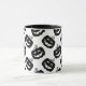 A black and white Halloween Coffee Mug with a simple design featuring a spooky pumpkin in a tiled fashion. Thank you for stopping by. Please visit our store for more items!