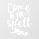 This fun Halloween window cling features text image "Come In For a Spell" with witch flying on her broom. Perfect for the holiday season.