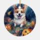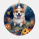 Halloween Corgi With Pumpkins Scary Ceramic Ornament